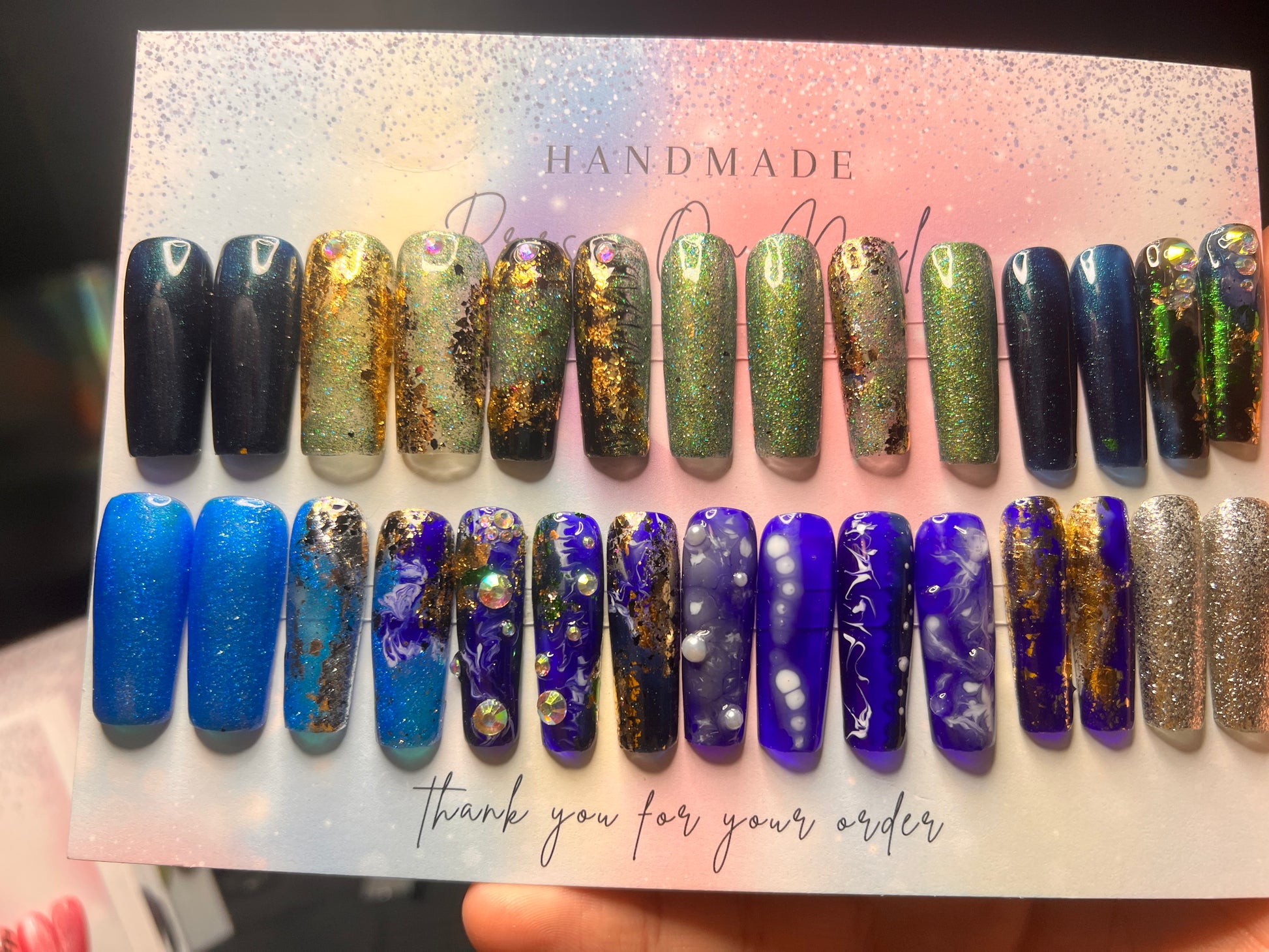 - 28 handmade press-on nails (multiple sizes for a custom fit)