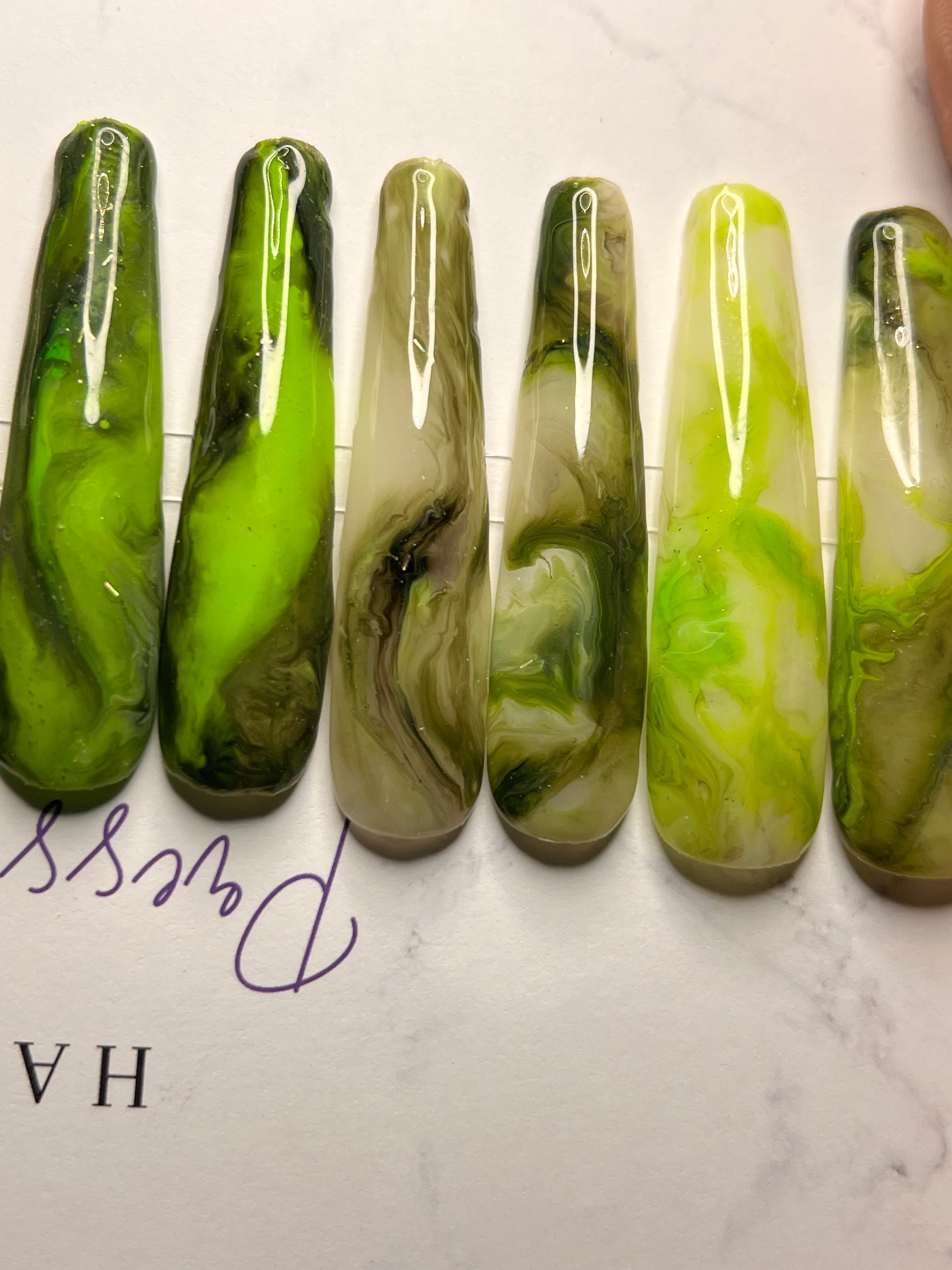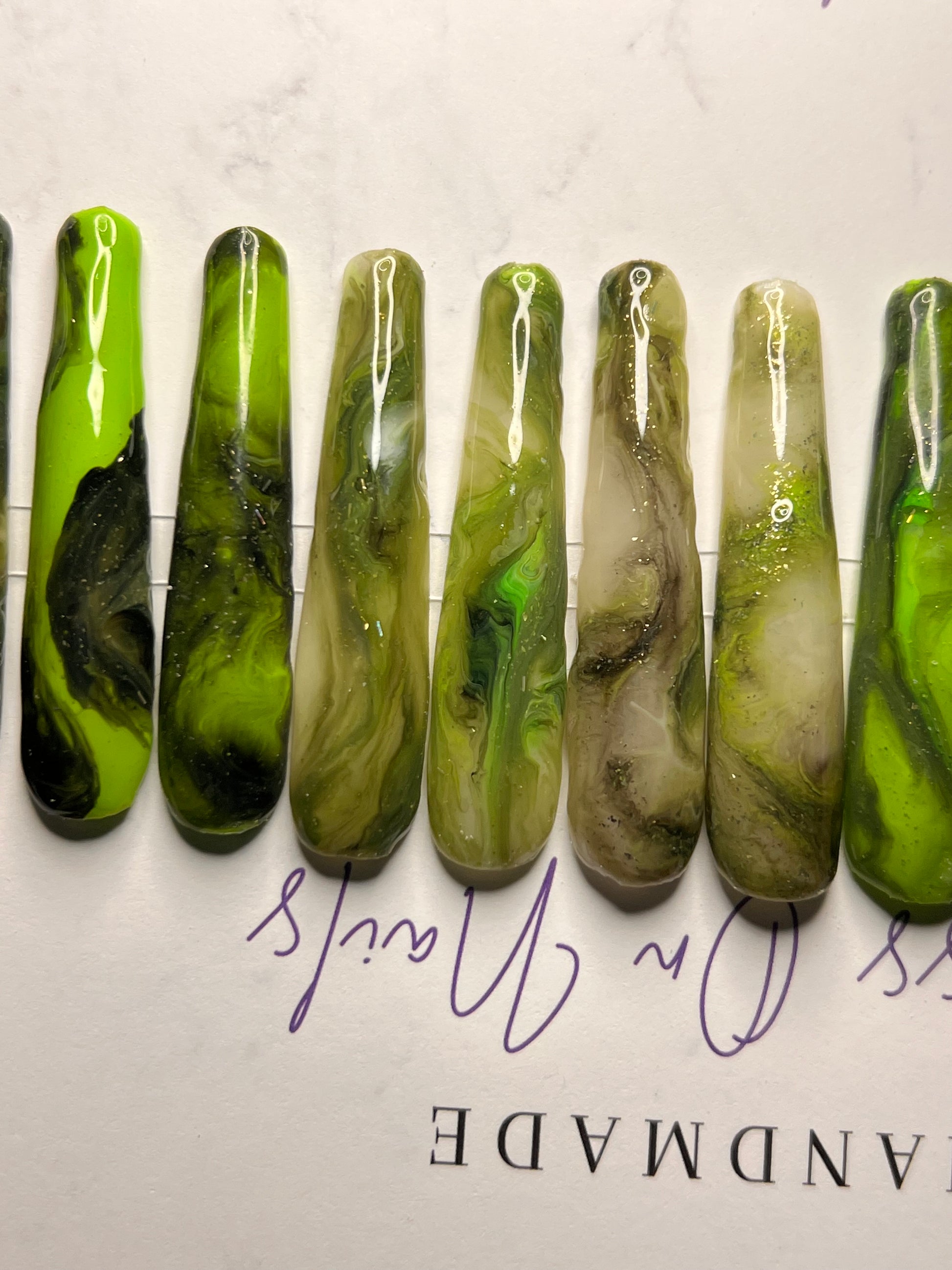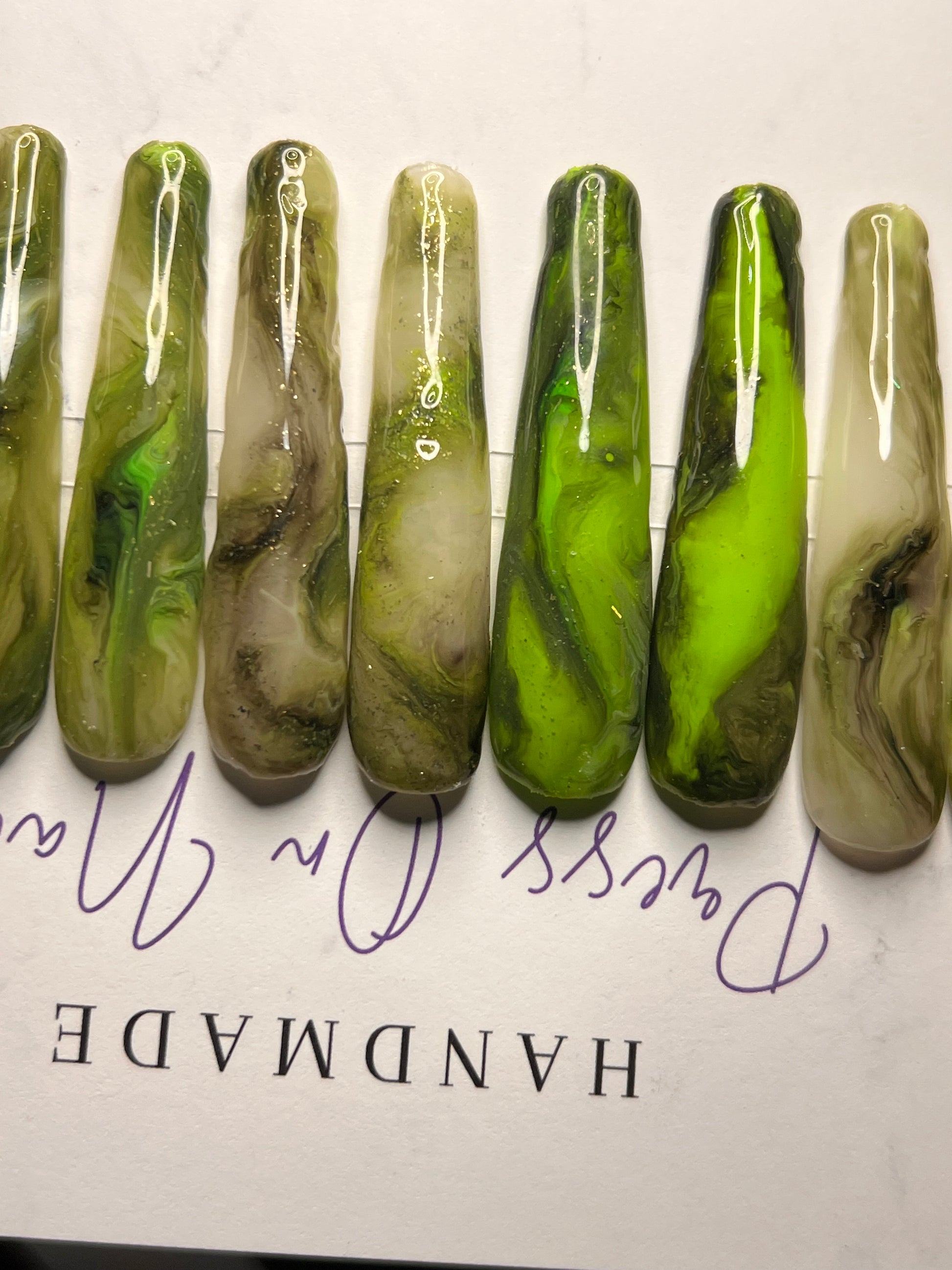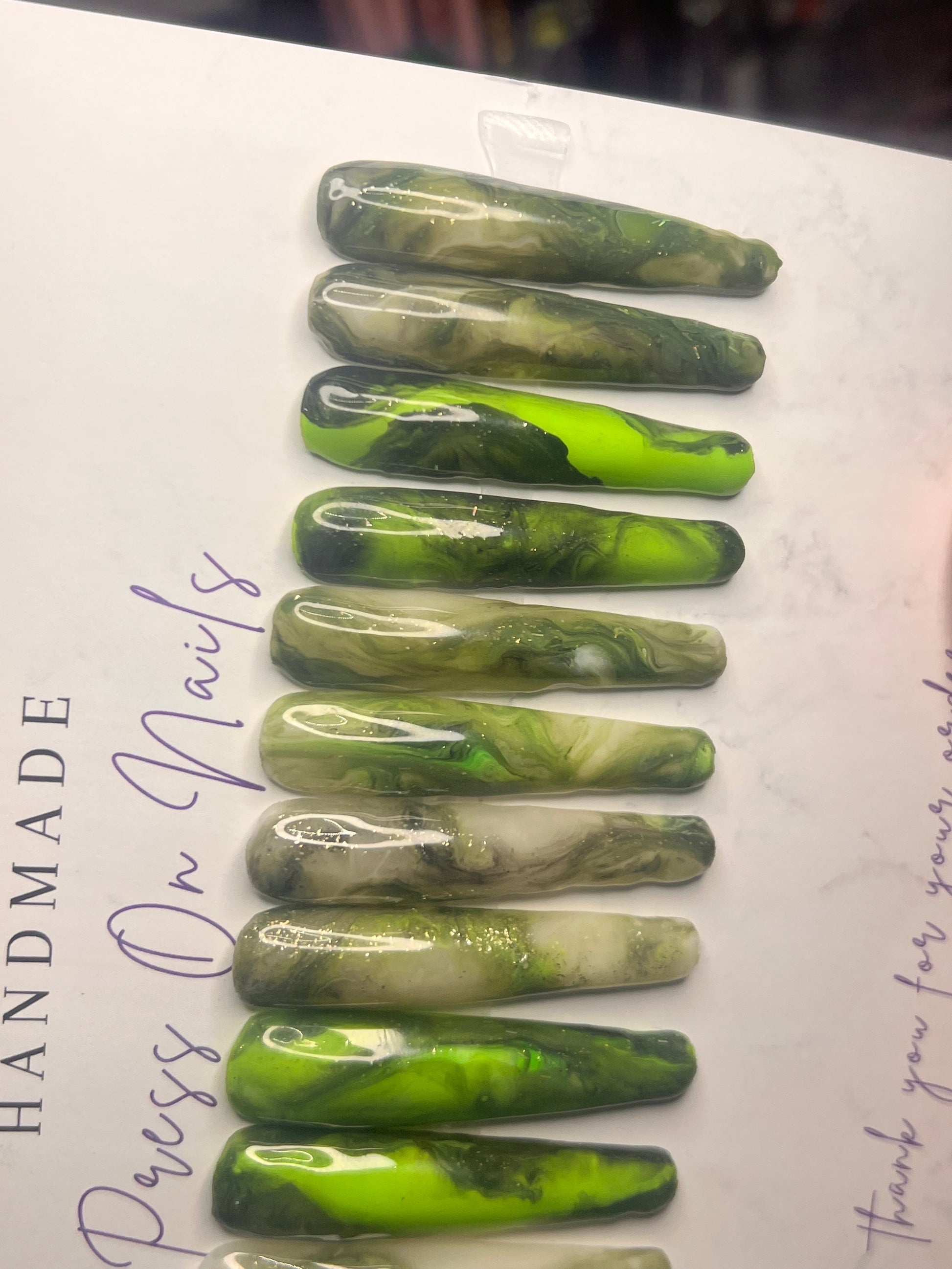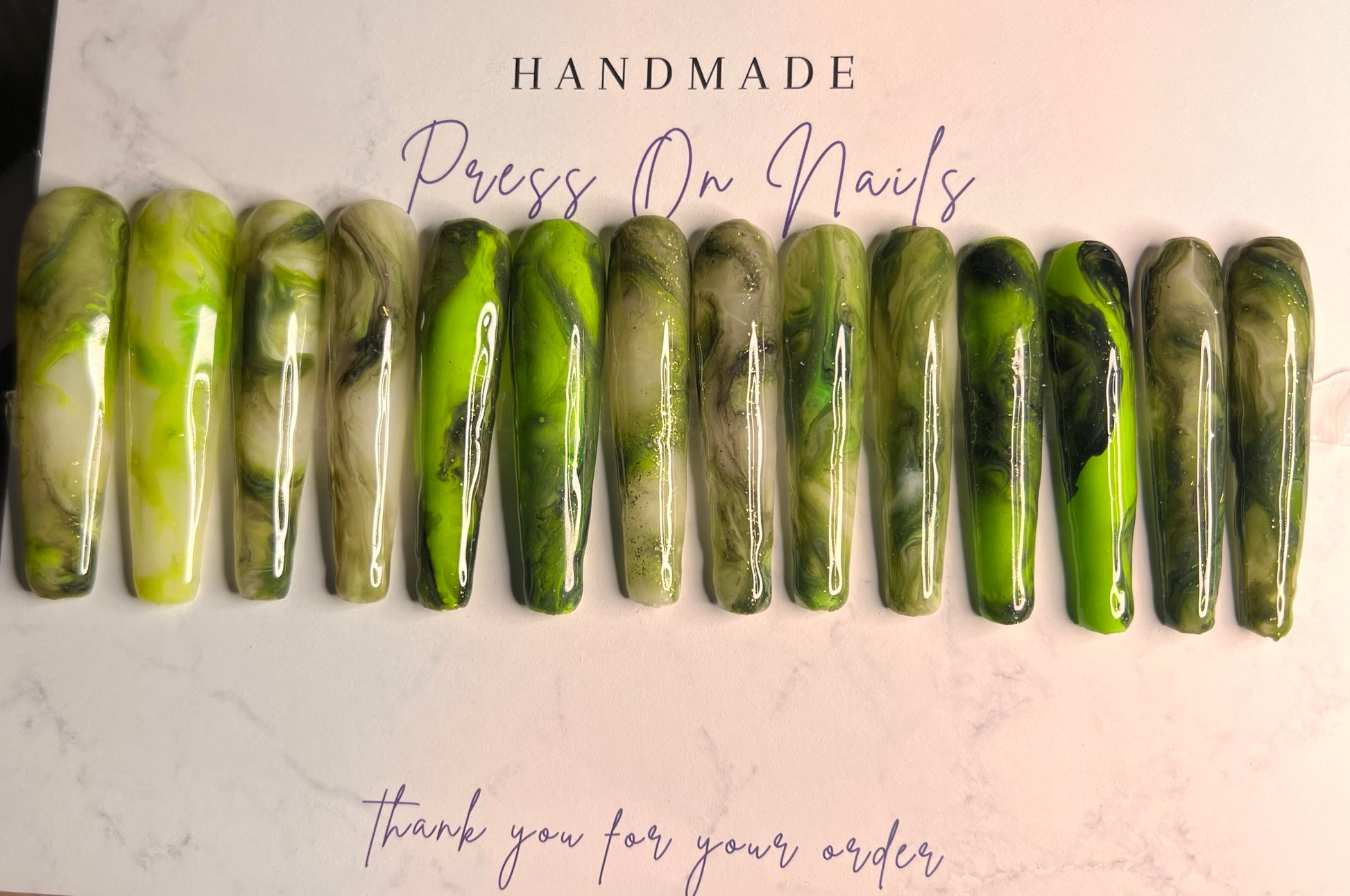 - 14 handmade press-on nails (2 of each size for both hands)