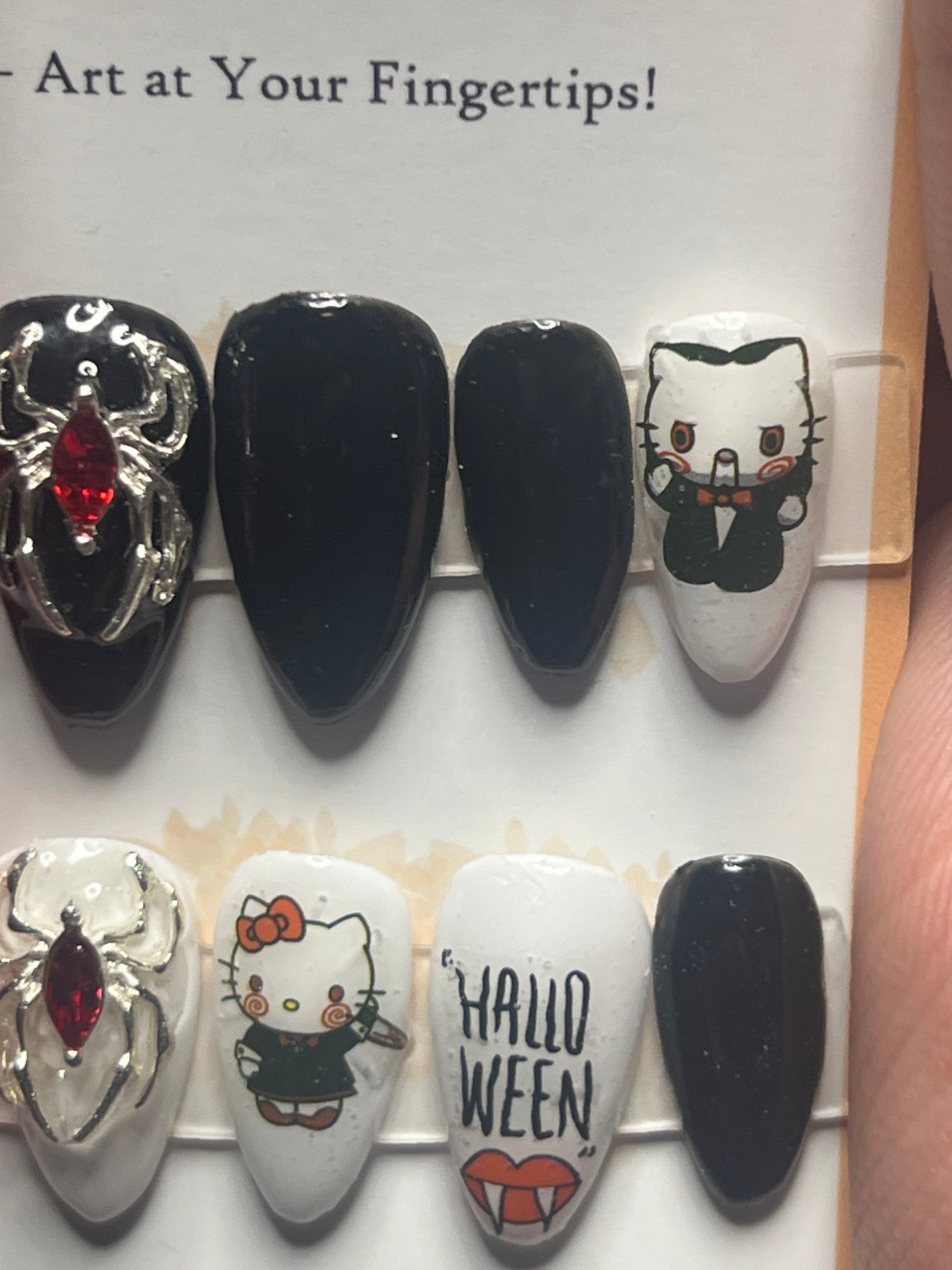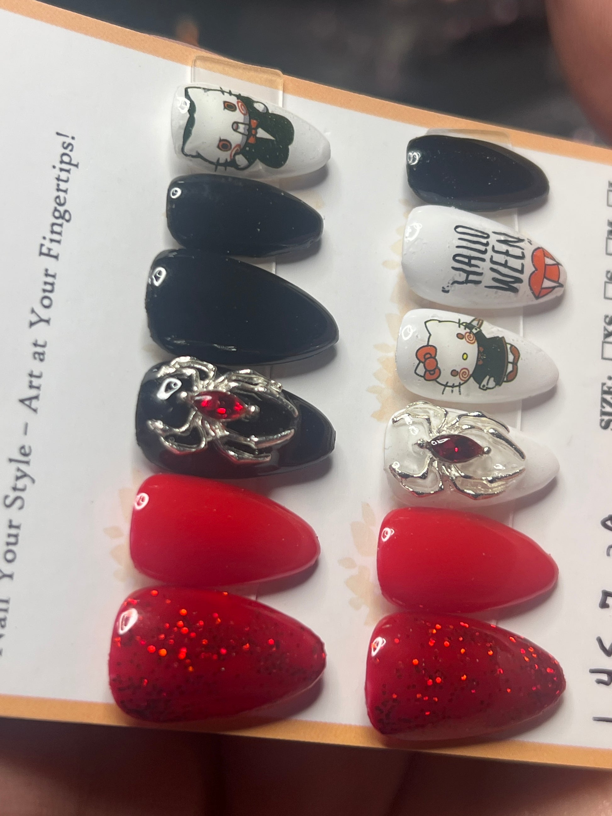 - 12 handmade press-on nails (2 of each size for both hands)