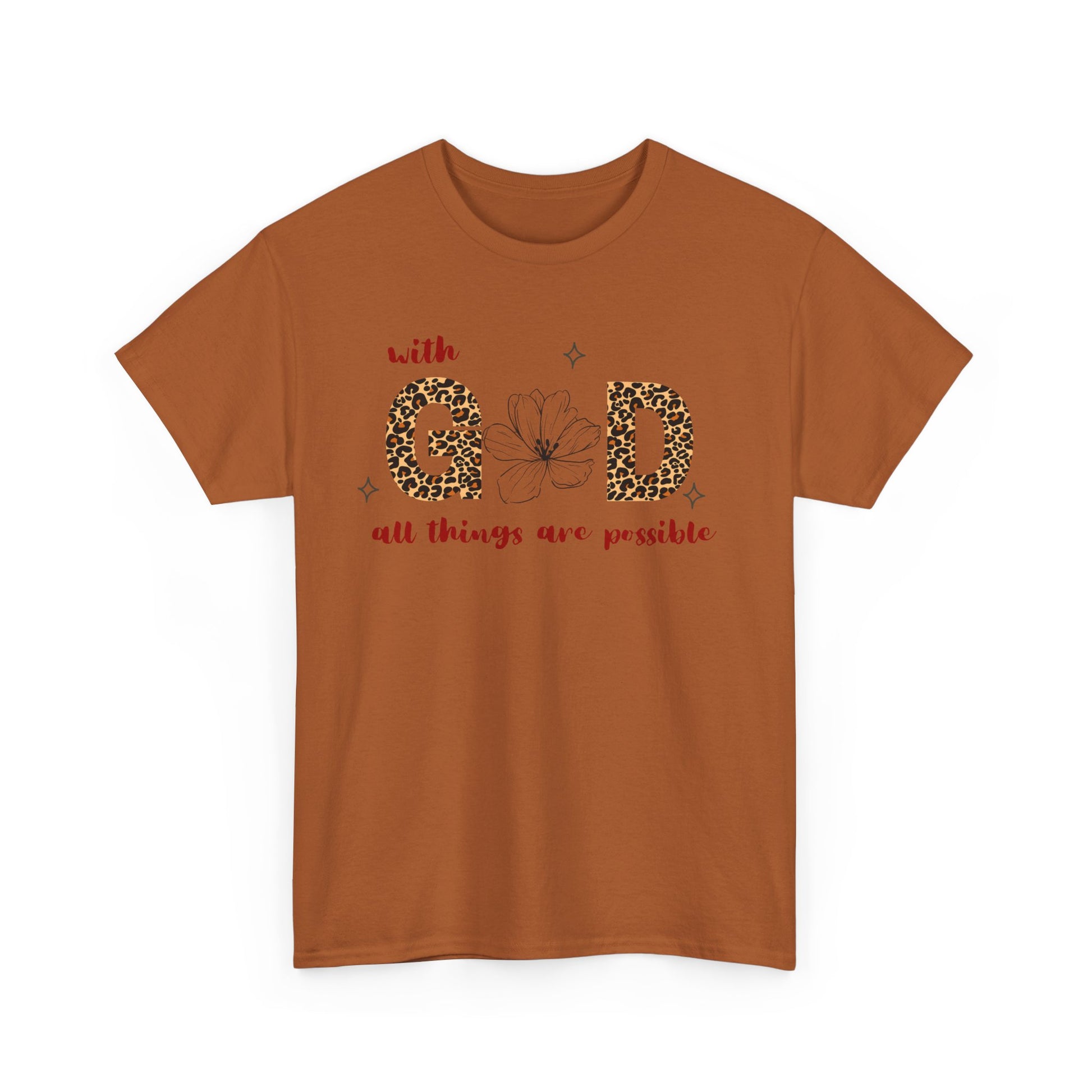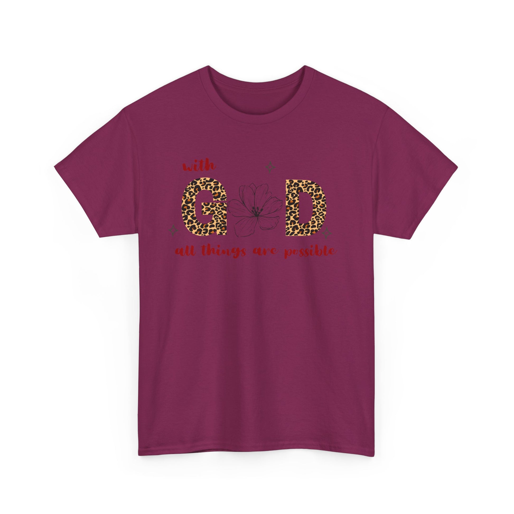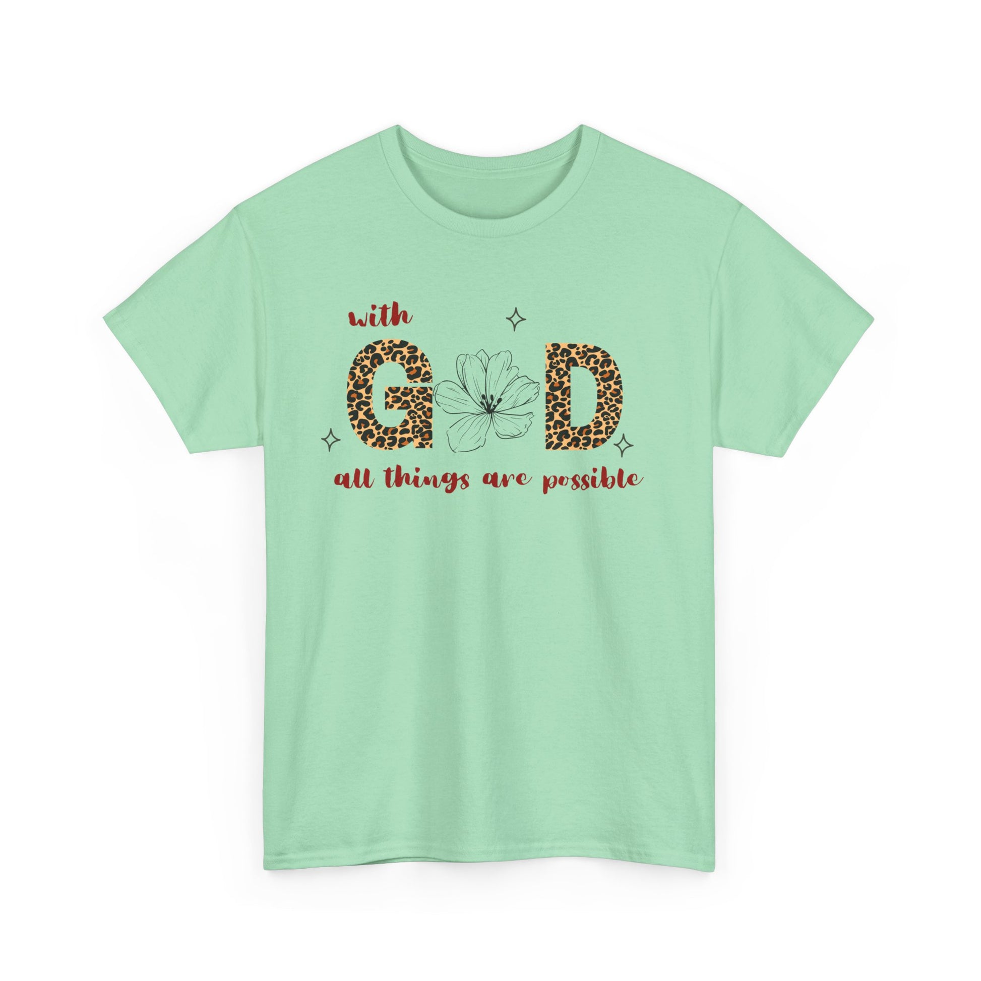 Introducing our stylish Unisex Heavy Cotton Tee, a perfect blend of comfort and inspiration. This shirt features a meaningful design that reads "with G0D all things are possible," encapsulating a message of hope and positivity. Whether you’re out with friends, attending a casual gathering, or simply enjoying your day at home, this tee brings a relaxed vibe that fits seamlessly into your wardrobe. Ideal for individuals who appreciate faith-based apparel, it's perfect for every occasion, from everyday wear to special celebrations. Its lightweight, breathable fabric ensures year-round comfort, making it a fantastic gift for birthdays, holidays, or simply because. Celebrate life and inspire those around you with this thoughtful addition to your closet or as a gift for a loved one.