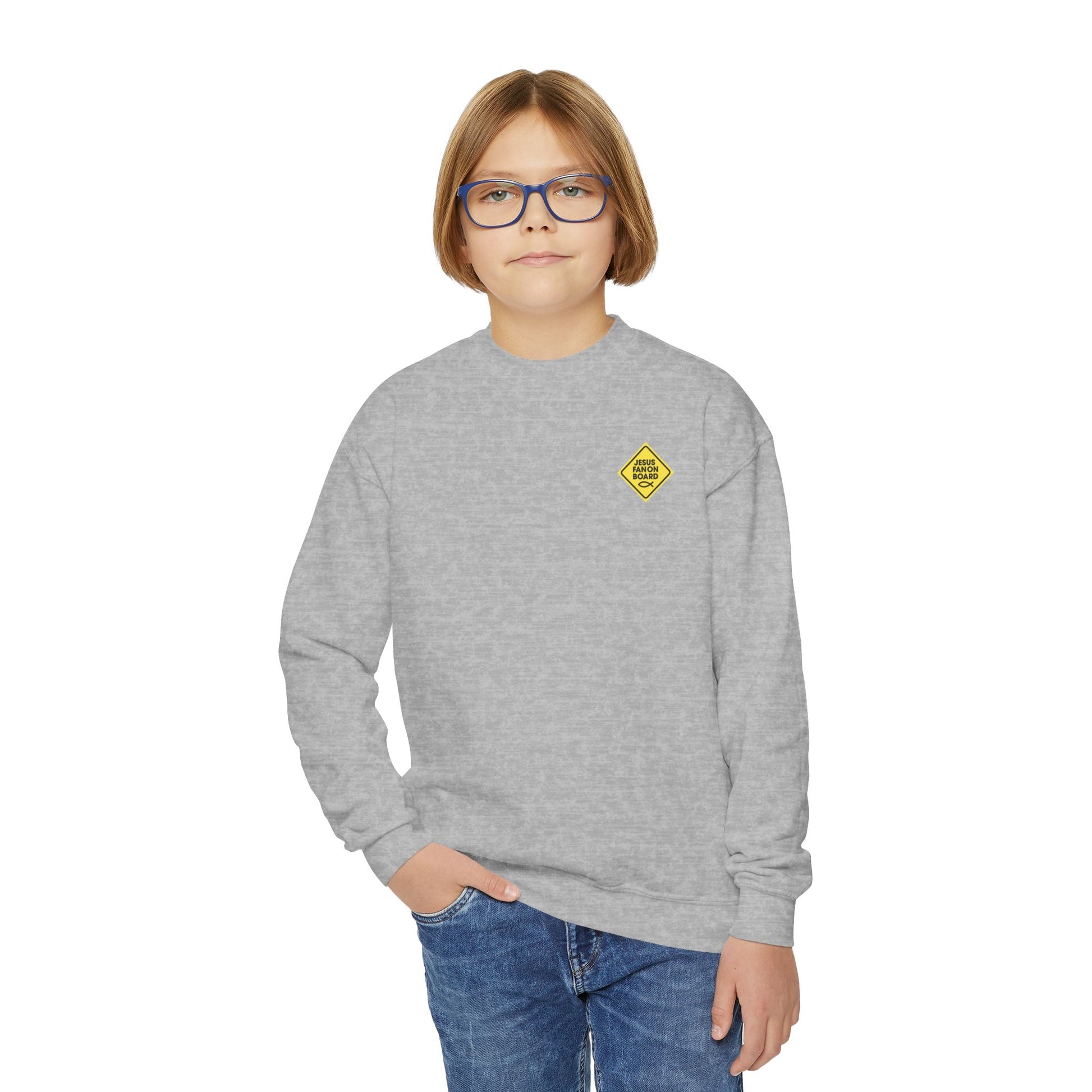 Jesus Fan On Board Youth Crewneck Sweatshirt