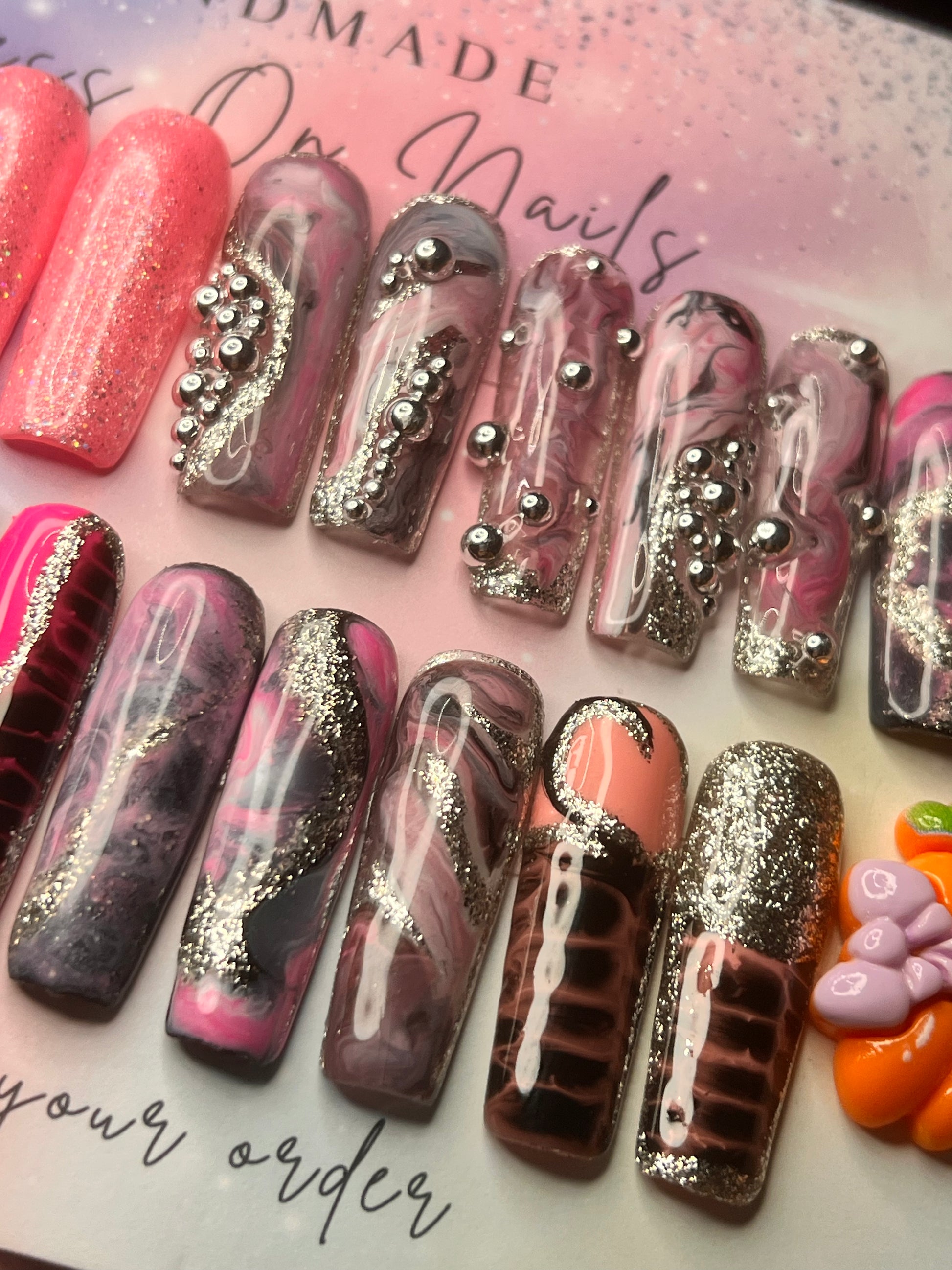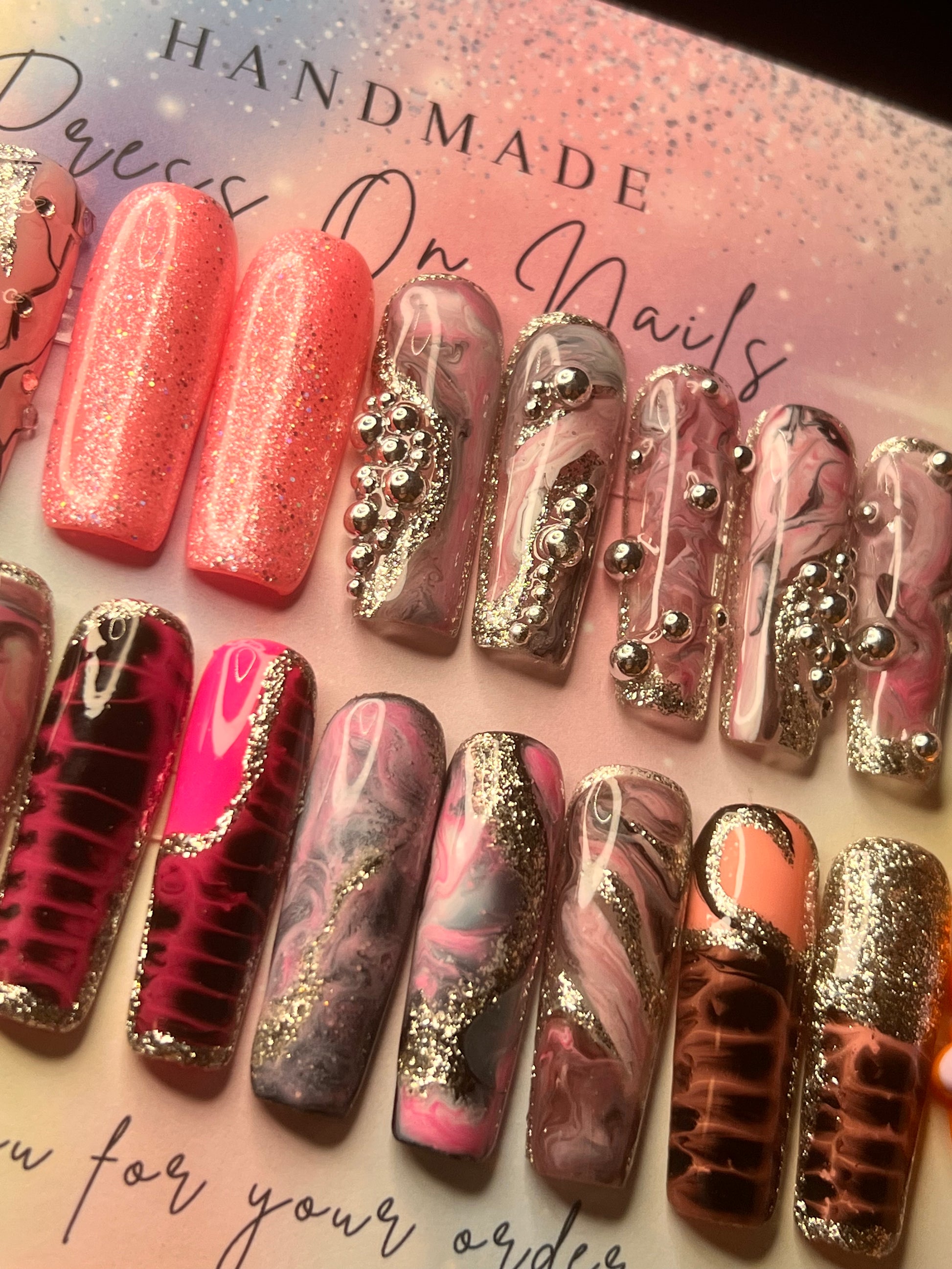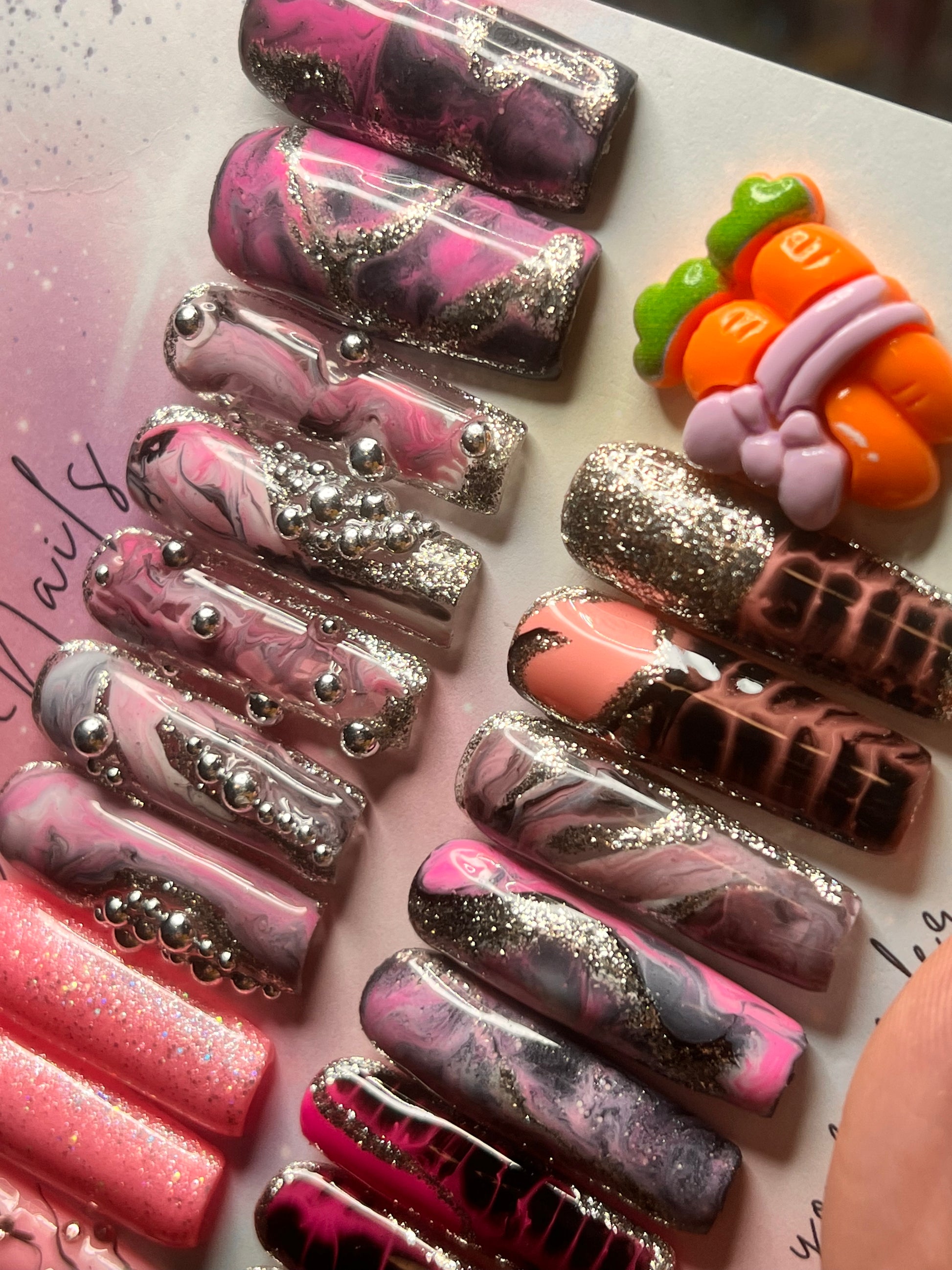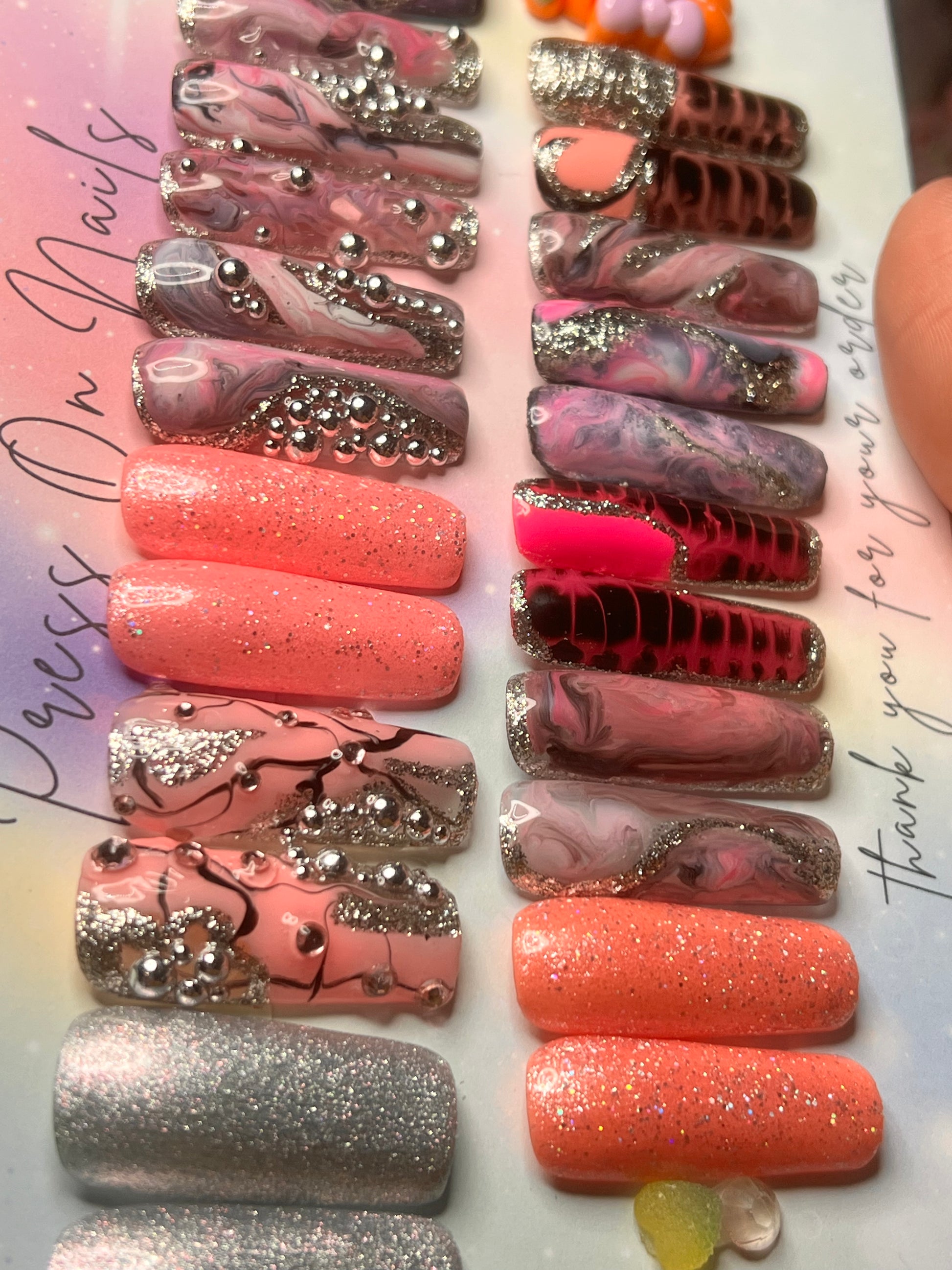 - 16 handmade press-on nails (2 of each size — includes an extra pair of size 4)