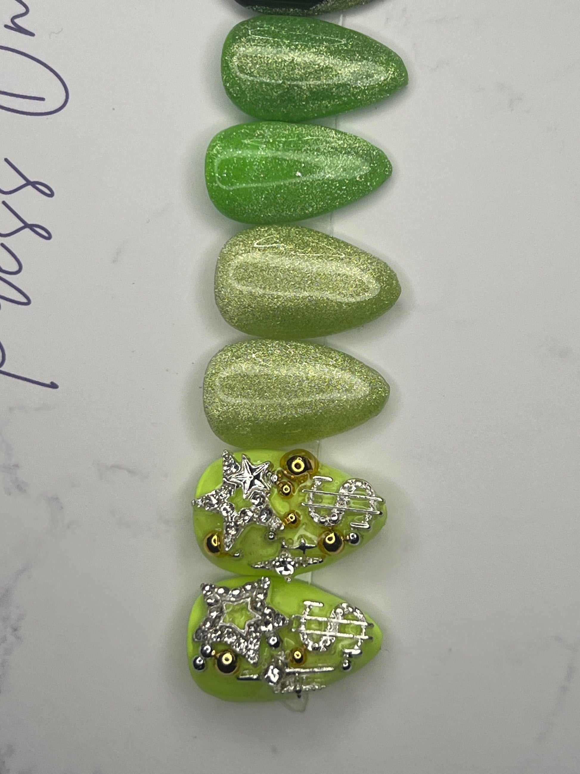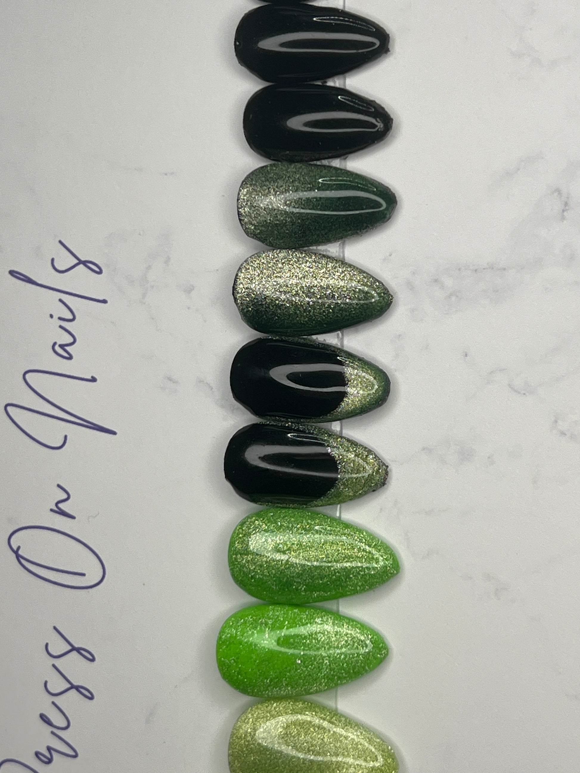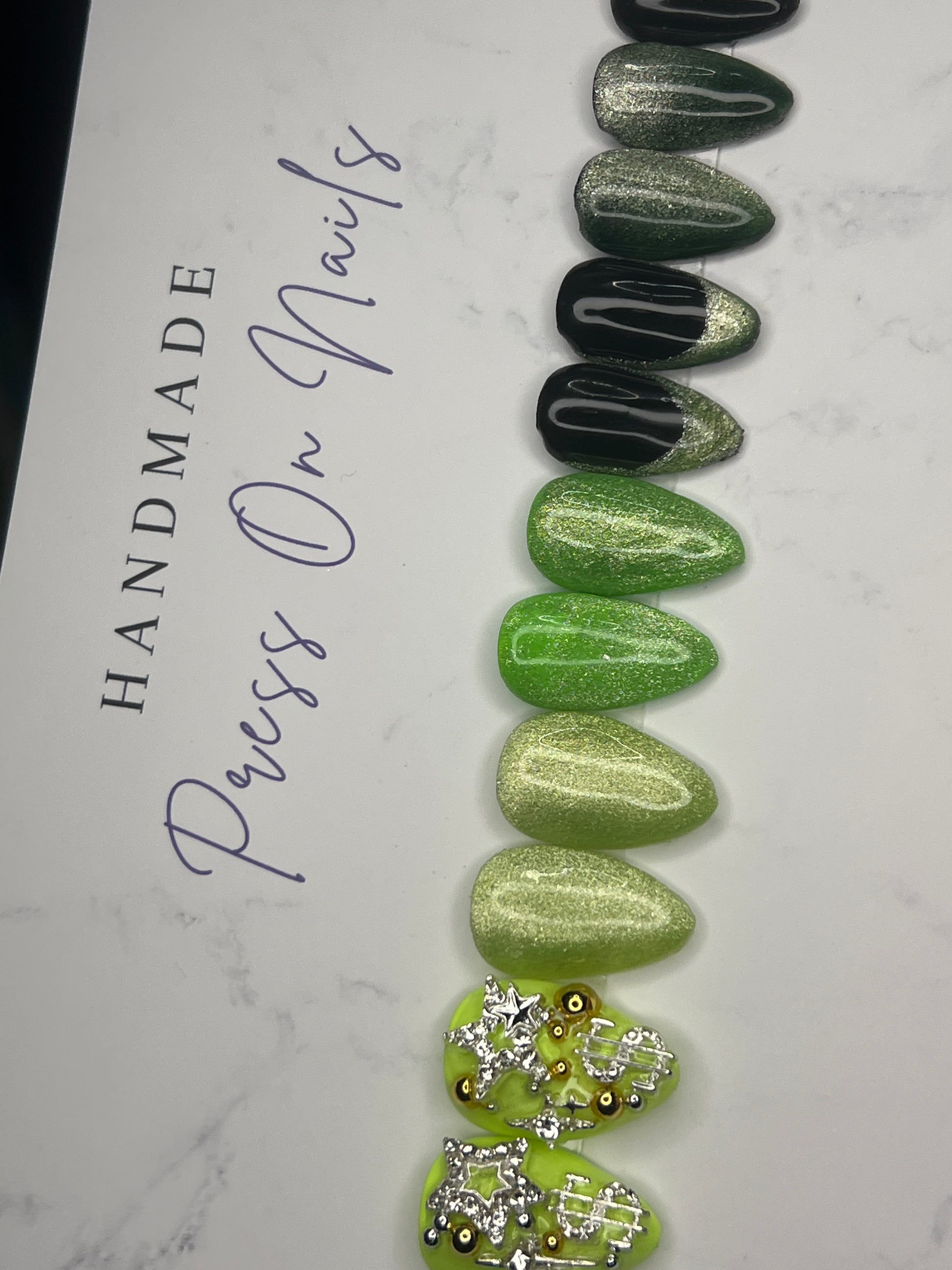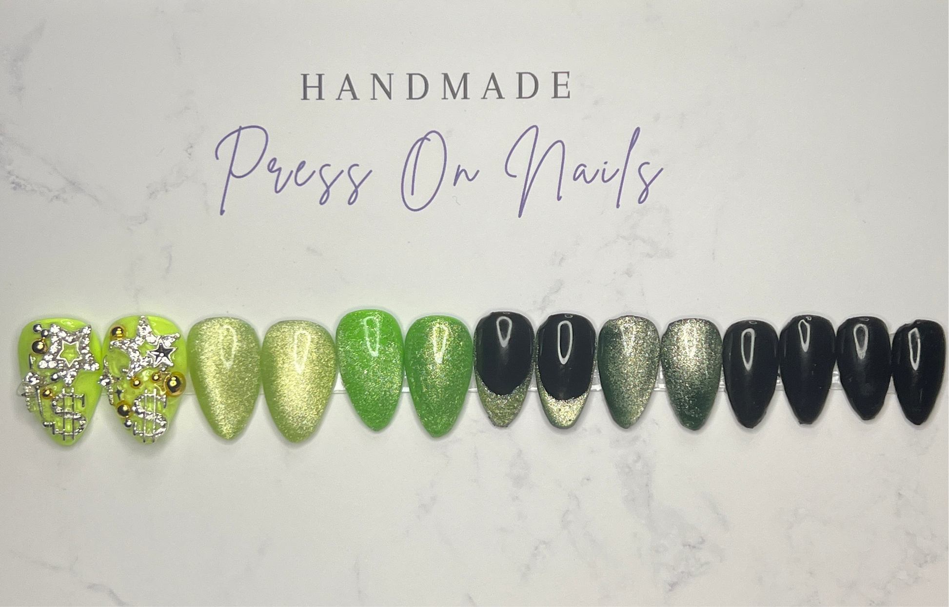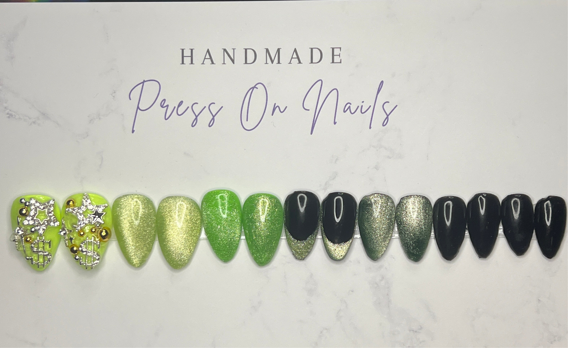 - 14 handmade press-on nails (2 of each size for both hands)