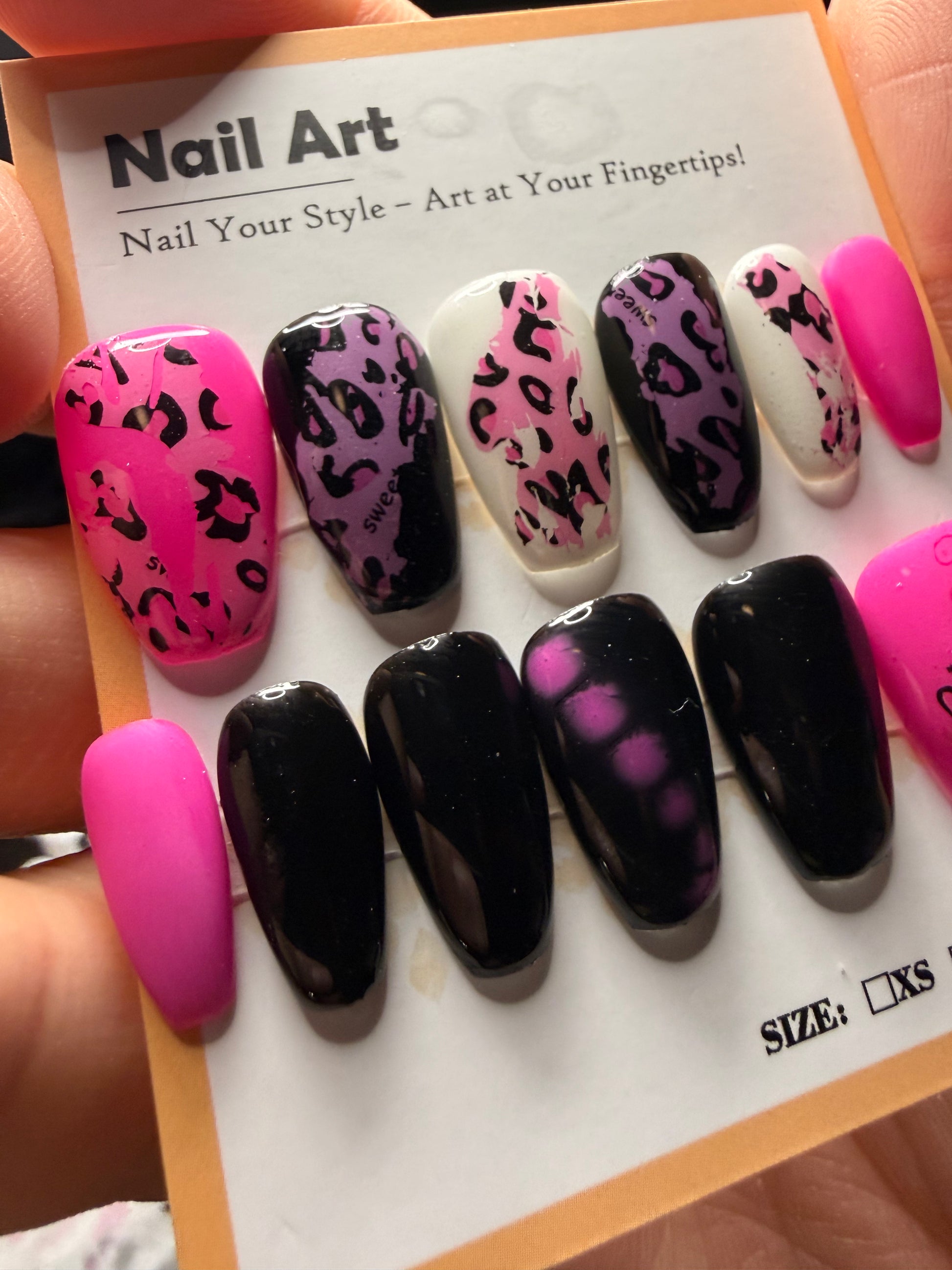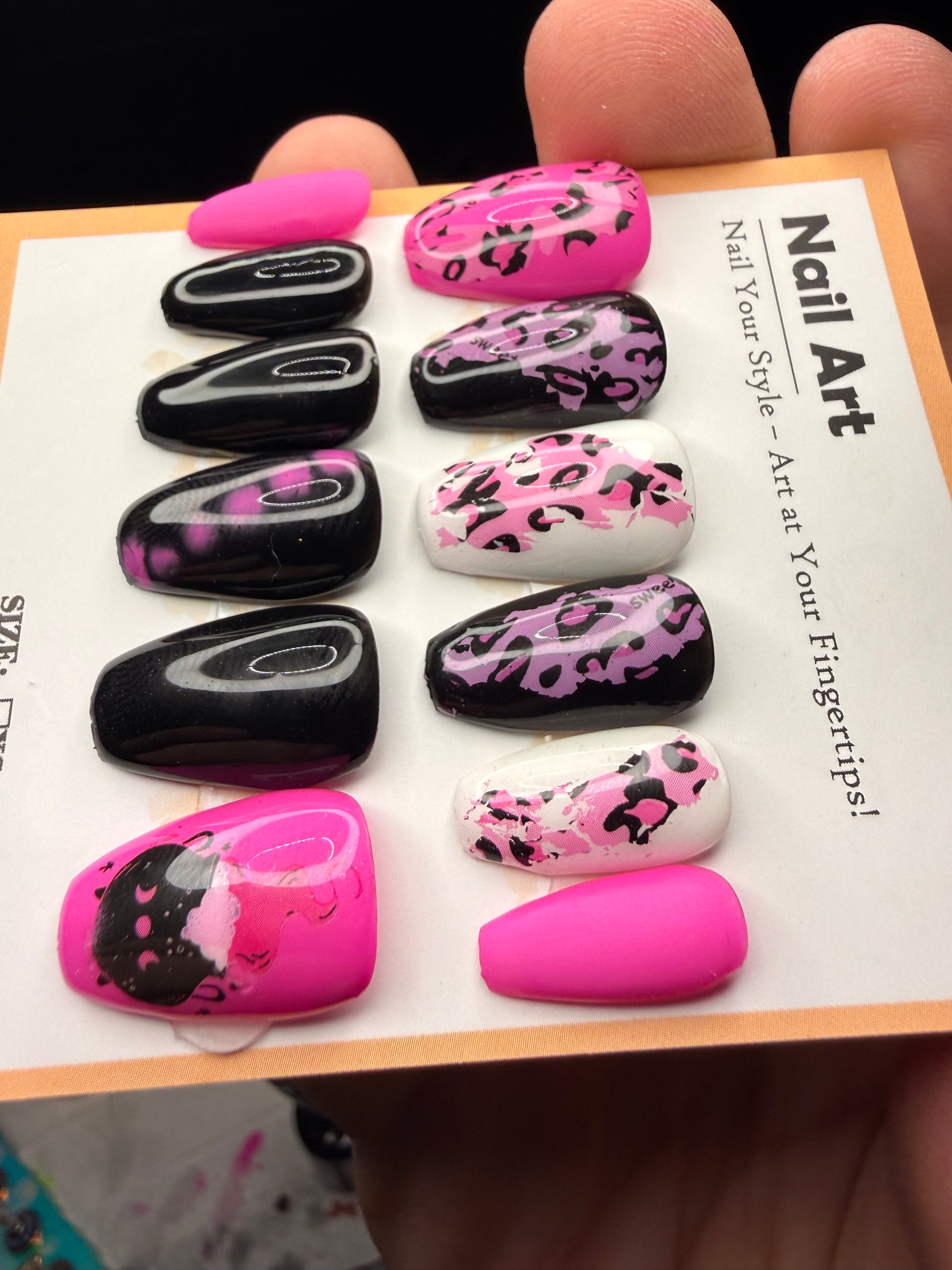 - 14 handmade press-on nails (2 of each size from 0, 2, 3, 4, 7, 8, 9)