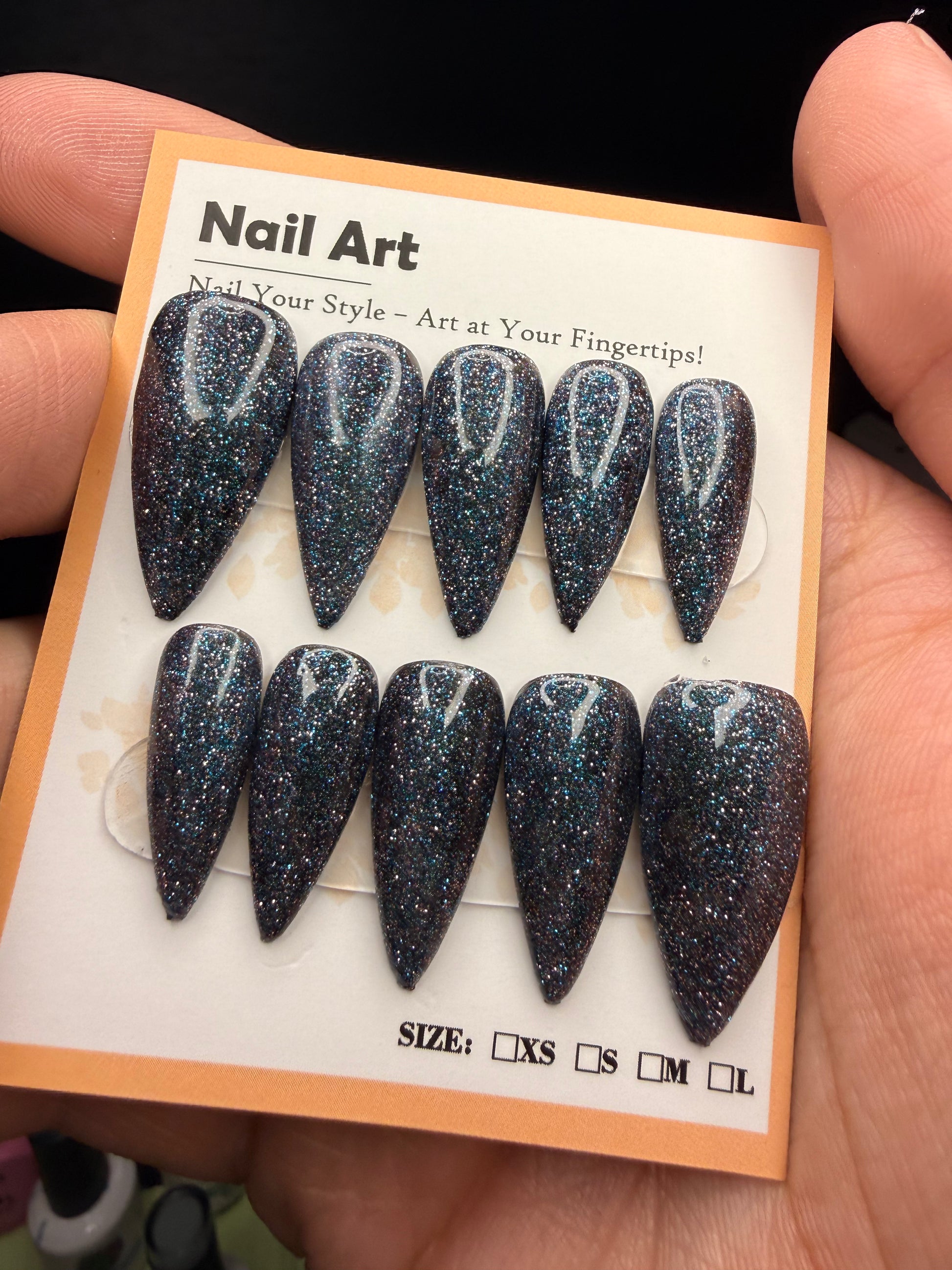 - 10 handmade press-on nails (2 of each size from 0, 3, 4, 6, 7)